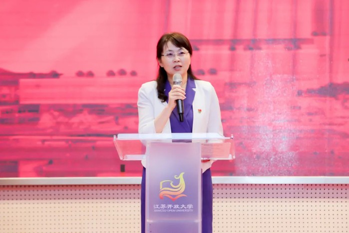 金丽霞在讲话中指出,昨天7月1日,“请党放心,强国有我”,这8字誓词铿锵有力,响亮的青春誓言在天安门广场上空久久回荡。今天,我校举办“我把青春献给党”演讲比赛,是一场青春与信仰的盛会,一场历史与未来的盛会,一场青年与时代的盛会。16名选手的演讲主题突出、声情并茂、语言流畅,唤起了我们的思考和共鸣。她表示,这次比赛,是我校深化党史学习教育、庆祝建党100周年的又一重要举措。她希望广大师生从党的百年历史中汲取奋进力量,学习榜样的力量,传承党的光荣传统、赓续党的红色基因、弘扬伟大建党精神,牢记使命初心,强化担当作为,爱岗、荣校、敬业、奉献,奋力谱写高水平开放大学发展的新篇章,以优异成绩向中国共产党百年华诞献礼!