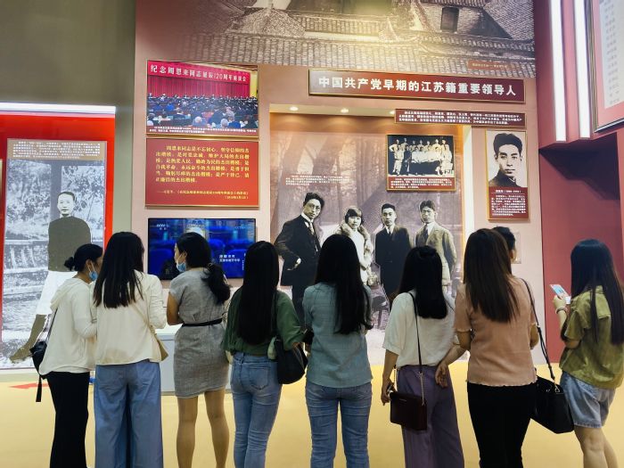 2500多幅图片、900多件套文物实物、160多个场景模型、130多幅图表地图,3990多个展项,12.4万展览文字……全方位、全过程、全景式、史诗般展现了中国共产党在江苏100年的历史;突出展示了党的十八大以来,“强富美高”新江苏建设的生动实践和巨大成就。在一幅幅泛黄照片、一段段珍贵视频、一个个场景再现前,老师和同学们驻足凝视,认真听取讲解,深切感悟中国共产党在江苏砥砺奋斗的初心使命。