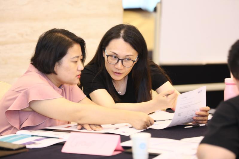 图1孟岩老师(左)和王存霞老师(右)参加学习设计工作坊