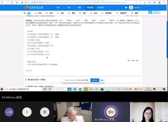随着线上培训不断推进,参培教师们逐渐适应,三位学习班长也总结出了不少培训心得。A班班长马克思主义学院副院长张露老师说:“这次工作坊对我们学院来说非常及时,结合这次学习设计工作坊的内容,我们学院的在线课程团队及时对自己的课程做出了设计更新。培训改为线上模式后,我更加感受到了主讲教授的专业度,他们对在线教学的节奏掌控到位,对激励老师们参与学习活动非常在行,虽然没能面对面学习,但我们每个小组仍然交出了满意的作业。”B班班长外国语学院副院长袁利老师说:“通过参加本次英开工作坊的学习,我了解到英国开放大学在开放教育领域的先进理念和成熟经验,不仅有利于自身教学理念的提升、信息化技能的提高,也将有利于本人运用本次所学,结合江开课程建设的实际情况,扬长补短,做好学院各专业课程建设的顶层设计和管理工作。”C班班长环境生态学院副院长秦品珠老师说:“虽然疫情突然来袭,但每天下午2点大家都能准时上课,主讲教授们为我们搭建了一个非常适合线上交流合作的平台,在学习过程中大家直面各种问题与困惑进行探讨,教授的点评也让我们深受启发、引起更深层次的思考。线上学习对我来说是一种挑战,每天4个小时的线上学习要比线下累得多,每秒钟都要集中精神,一不小心就可能跟不上节奏,有了主讲教授、助教、翻译的帮助,我的学习变得顺利了很多,非常感谢他们的付出。”