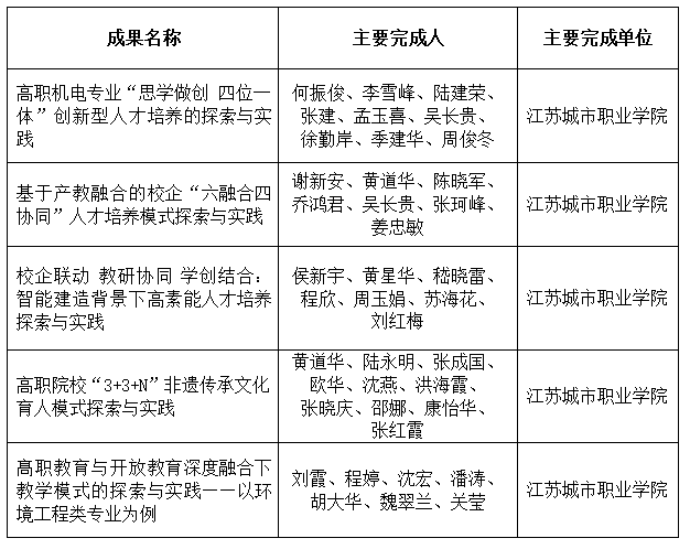 根据《省教育厅办公室关于做好2021年江苏省教学成果奖评选工作的通知》(苏教人函﹝2021﹞21号)明确的推荐数量和条件,经校外专家评审和学校教学指导委员会投票,现将拟推荐申报江苏省教学成果奖(职业教育类)成果信息公示如下(排名不分先后):