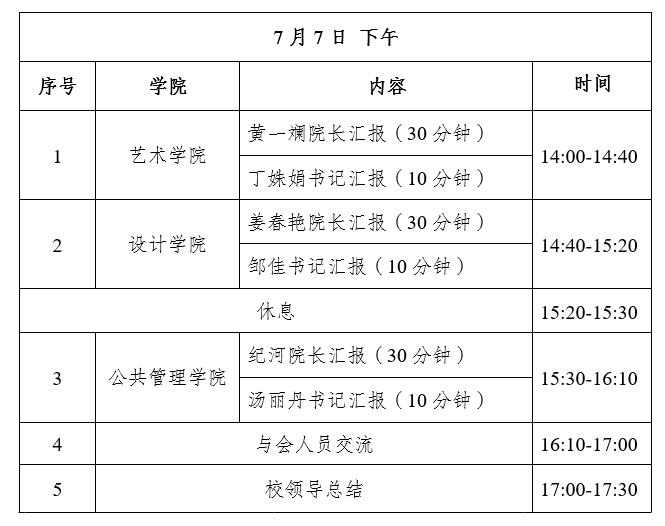 2. 二级学院:各学院书记、院长,参加汇报学院的副院长、系主任、学科带头人、专业负责人
