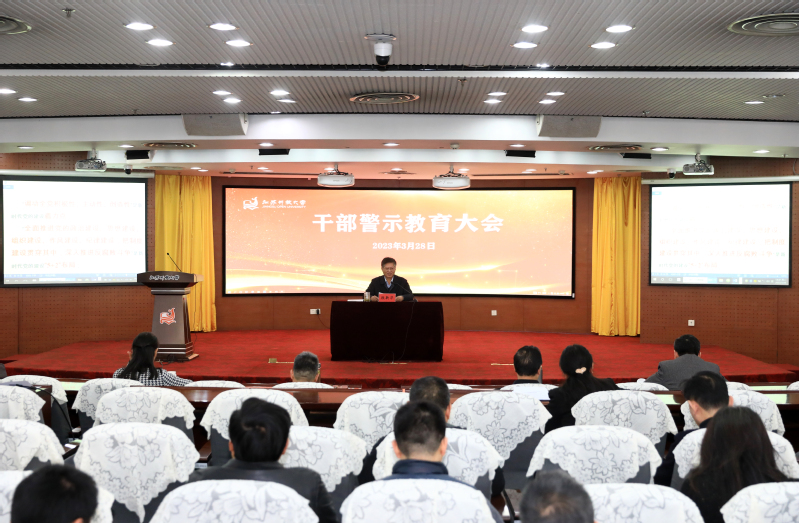 3月27日下午,我校召开干部警示教育大会,纪委书记(监察专员)顾新华、审计处长袁桂霞分别以案说纪、以案说法、以案说德、以案说责,对全体校领导、纪委委员、纪检委员、学院部门及其内设机构负责人、纪委内设机构工作人员开展警示教育。