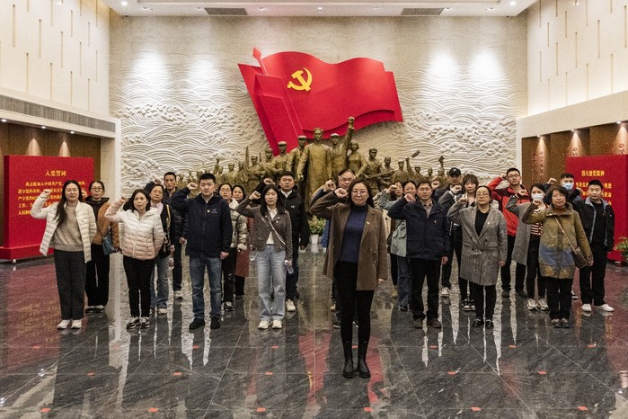 随后,党员同志来到江北新区红色广场,缅怀革命先驱,学习革命先烈事迹,通过场馆内的图片与实物展示,大家深刻感受到了南京早期党组织的光辉历史,重温了那段波澜壮阔的战争岁月。最后,通过重温入党誓词,回望入党初心,端正思想认识,进一步增强了全体党员的责任感和使命感,也更加坚定了积极为党工作的决心。