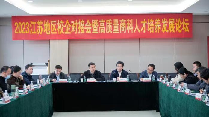 3月30日,2023年江苏地区校企对接会暨高质量商科人才培养发展论坛在南京市成功举办,商学院营销管理系应邀参会。本次论坛由中国连锁经营协会(CCFA)主办、江苏经贸职业技术学院承办,来自沃尔玛、永辉超市、苏宁易购、星巴克、小厨娘等三十余家企业以及江苏财会职业学院、苏州农业职业技术学院、扬州工业职业技术学院等十几所高职院校的近50位代表参加此次活动。