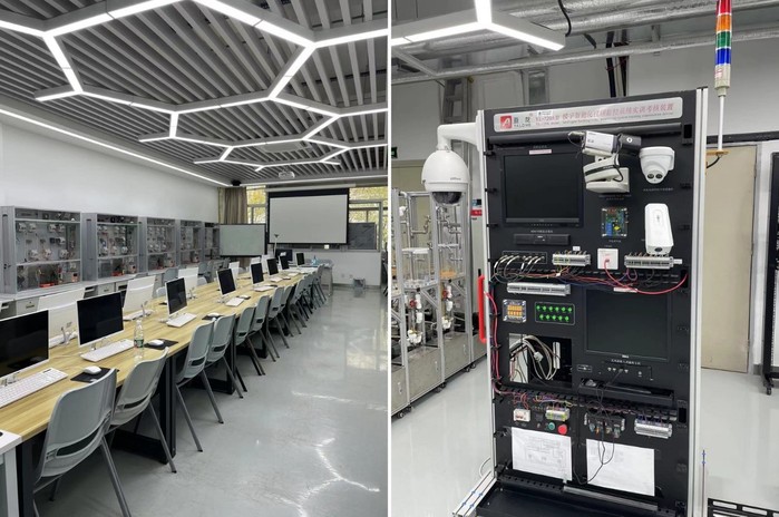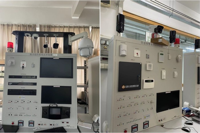 此次交流活动中,工作人员带领大家参观了深职院留仙洞校区机电工程学院和建筑工程学院的实训室,现场介绍了多样化的实训装置,例如,防盗报警系统实训装置、混合监控系统实训装置、楼宇智能化设备监控系统实训装置等。