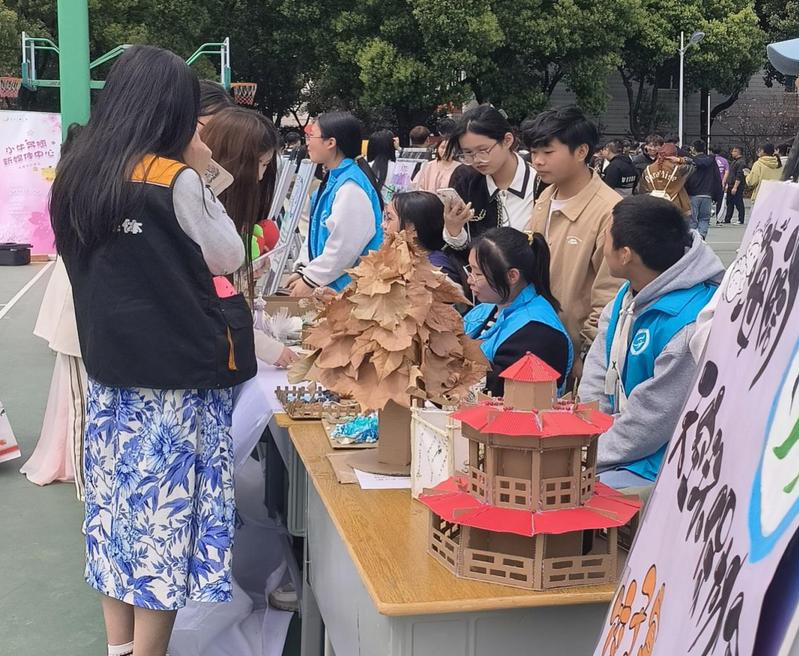 本次活动中,协会展示了环保手工大赛中获奖的特色作品。作品材料均为废纸、空瓶等废弃物,通过学生一双双灵巧的双手将他们变废为宝,变成了一件件艺术品。党委副书记、副校长金丽霞来到协会展台前,观看环保作品,听取了同学对作品的详细介绍,给予了肯定和鼓励。