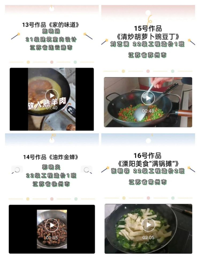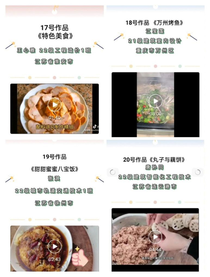 为激发学生了解家乡、热爱家乡,探究家乡特色文化,促进各地方文化交流,增强文化自信,引导学生提升实践能力、劳动热情和感恩意识,建筑工程学院团总支于1-2月份策划举办“眷归故里,念兹乡食”微视频大赛,共收到26份来自全国各地的作品。同学们通过多种拍摄视角,制作出了独具家乡特色风味的美食微视频。