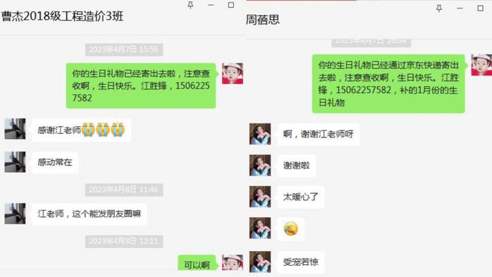 第一批收到生日礼物的校友们纷纷主动联系学院老师,字里行间透着惊喜、温暖与感动。希望这份小小的用心的专属礼物能成为亲情纽带增进校友们和学院的联系,更希望校友们在和母校的互动中彼此支持帮助,共同发展进步。