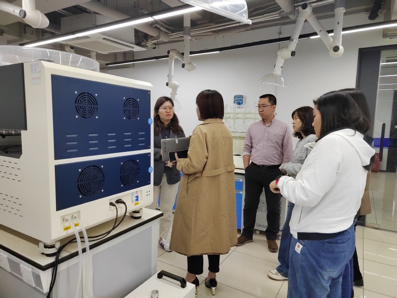 洽谈会上,刘哲总经理首先对干院长一行到访表示热烈的欢迎,并介绍了公司的发展现状和业务范围。沈丹部长介绍了实验室在设计咨询、工程建设、高端仪器选型、体系认证和运行维护等方面的典型案例。李苏部长介绍了环保检测设备和业务范围,并欢迎学院定期组织学生来企顶岗实习、实践锻炼。干院长对生态环境技术研究院的热情接待和合作支持表示感谢,并就学院的战略规划、人才培养模式、新校区实验室建设等方面进行介绍。段书记表示,生态环境技术研究院是一家实力雄厚,管理规范的央企,希望能加强校企合作,在实验室建设、学生实习就业等方面开展一系列广泛而深入的合作。随后,宾主双方围绕学生实习就业、人才培养需求、实验室建设、产学研合作等主题进行了深入探讨,并就建立校外实习实训基地、实验室建设规划、联合开展课题申报等达成了合作意向。最后,在李苏部长的陪同下,调研组一行参观了公司的实验室,协商资源融合共享,促进共同发展。