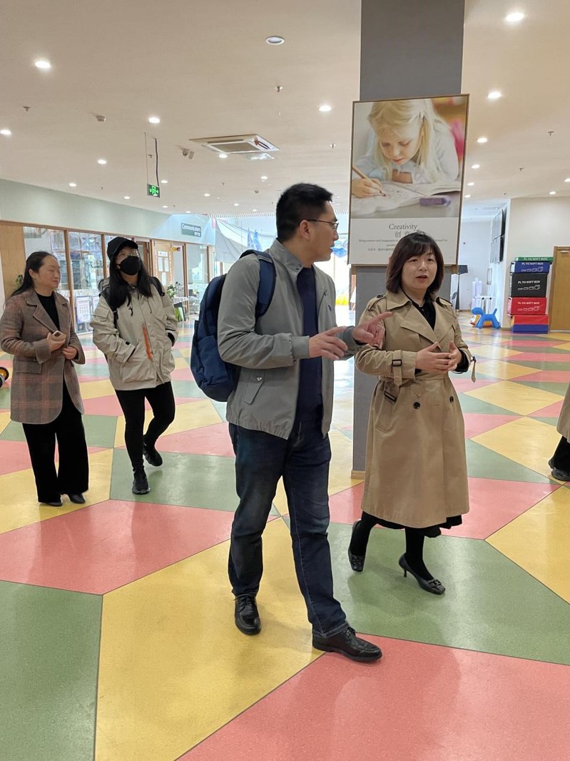 另一组由学前教育系主任夏松带队,前往南通市禾光幼儿园调研学习。蔡园长和齐园长介绍了禾光幼儿园的办学理念、教师培训与儿童活动设置。之后,双方从学习者层面,重点讨论了学前教育专业的专业建设、课程设置、课程实训等三个方面,深入探讨了保育师课程设置及0—3岁幼儿学前教育专业对接幼儿园的可行性与方法;从师资建设层面,积极协商推动优秀师资共享,建立有效的合作机制与路径。