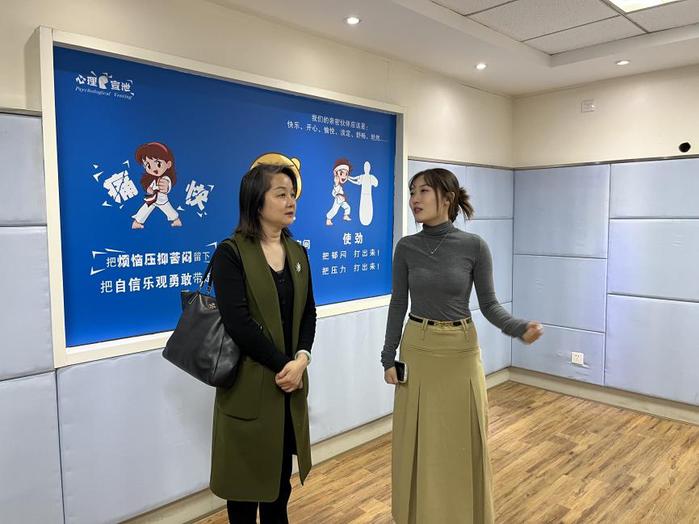 淮安开放大学副校长冀益萍对商学院学工团队的到访表示欢迎,并和心理健康专职教师刘奕雯陪同调研与交流。刘奕雯老师带领大家先后参观心理咨询接待室、个体咨询室、团体辅导室、沙盘游戏咨询室、情感宣泄室、音乐放松室等6个功能室,并详细介绍淮安开放大学心理健康服务中心的建设历史、工作模式和近期成果。随后双方就心理委员培养、心理实践活动、学生团体辅导和危机个案处理等话题进行深入讨论和交流。