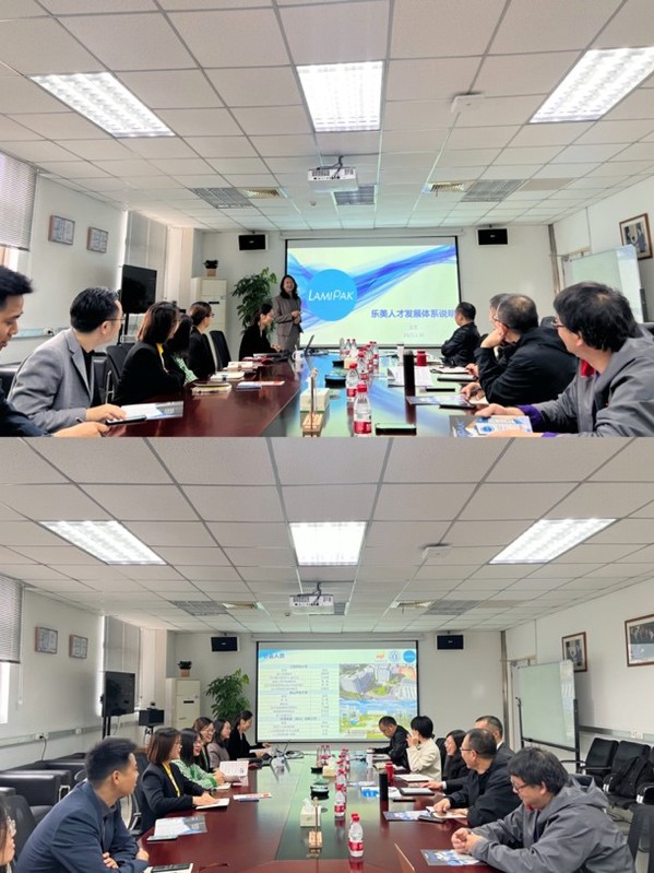 “乐美包装”经营范围主要为包装装潢印刷品印刷,生产纸铝塑多层复合无菌高阻隔食品软包装材料等。会上,企业领导对现有岗位、毕业生岗位需求、员工培训内容、进修计划进行了详细的介绍,重点讲解了公司自主开发的课程培训、在线学习平台、人才发展体系及“乐美学院”,强调了公司内部对员工学习、专业培训、学历提升和个人发展的重视。“华冠商标”从事专业标签、贴纸印刷为主,学校一行参观了公司制图工作室及印刷车间。会上,企业领导介绍了员工目前的专业分布及学历情况、岗位需求情况,表达了对毕业生就业需求和在职员工学历提升需求,并介绍了公司对员工学历提升给予的相应支持和奖励政策。