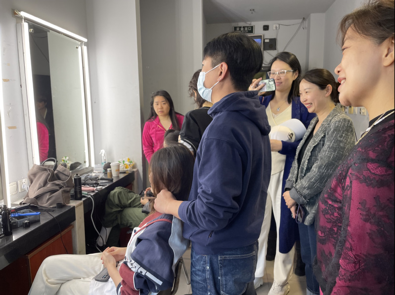 上戏舞美系系主任伊天夫教授分享了他们在长期的教学过程中积累的丰富经验与完整的教学体系;我系老师也介绍了我校戏剧影视美术设计专业与人物形象设计专业的办学历史、招生规模、教学模式等,双方共同探讨如何紧跟时代发展,不断改革创新教学内容与方法。服化教研室主任范丛博与舞台灯光设计老师沈倩带领大家参观了舞美系实训楼、学生实践剧场等地。上戏舞美系在教学改革中发扬大戏剧的综合观念,与导演、表演、主持等多个专业相融合,各个专业学生协同合作、各司其职,从幕后到台前,从排练到演出,在校内即可参与真实的工作情景。范从博老师还介绍了2002年以来教研室推出的以“着色”命名的教学方法,通过打造一个多维的人物造型展示空间,扩展了人物造型艺术设计概念,教与学都围绕着“着色”这个项目展开基础教学与设计教学,不仅大大提高了教学质量,更促进了教学新观念的建立和思维的更新。