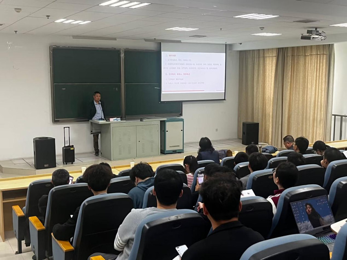 讲座开始之前,南京堃正工程项目管理有限公司工程副总汪立军为同学们播放了去年公司成立20周年特别拍摄的形象宣传片,现场发放了企业自己主编的报纸《堃正视角》,对企业和本次招聘岗位的需求、企业培训、薪资待遇等进行了具体介绍。汪总表示近两年企业共计录取了8位我院的优秀毕业生,对我院的人才培养给予充分肯定,欢迎23届的学生加入南京堃正,共同发展。