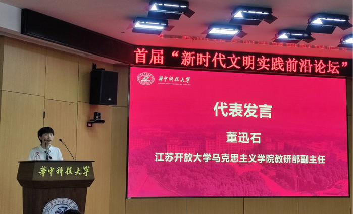 4月15日,湖北省首届“新时代文明实践前沿论坛”在华中科技大学举行,来自全国社会各界的专家、学者围绕新时代文明实践中心建设提质扩面、提档升级进行交流研讨。我校马克思主义学院形势与政策教研部副主任董迅石受邀参会,并作为小组代表在大会交流发言。