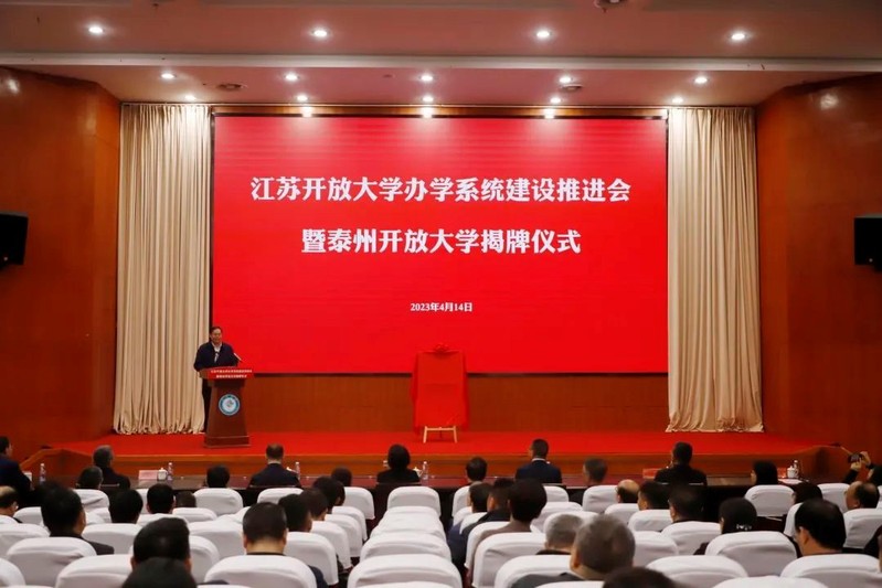 4月14日,江苏开放大学办学系统建设推进会暨泰州开放大学揭牌仪式举行。