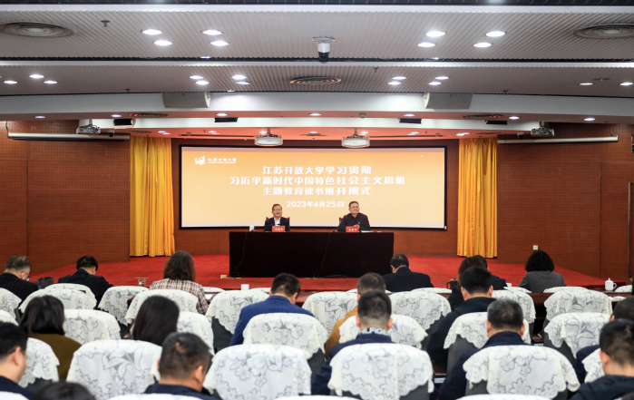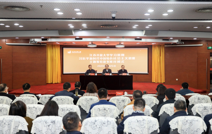 荆晅以《学思用贯通 知信行统一 以党的创新理论照亮高水平开放大学建设之路》为题作动员讲话。他表示,举办读书班是落实主题教育理论学习任务的具体举措,是强化领导班子和党员干部思想理论武装、提高政治站位的有效途径,是加速思想碰撞、理论研学、凝聚共识、改革创新的强大引擎,必须把学习贯彻习近平新时代中国特色社会主义思想作为终身必修课,自觉用以统一思想、统一意志、统一行动,始终牢记嘱托、感恩奋进、走在前列。荆晅强调,全体党员干部要以高度的政治责任感和勇于担当的精神组织好、落实好读书班的各项工作。要深学笃行,准确把握举办主题教育读书班的重要意义;要层层递进,扎实推进主题教育读书班各项学习任务;要严守其责,全面落实主题教育读书班学习要求。荆晅指出,全校各级党组织要立即行动起来,深入学习习近平总书记重要讲话精神和党中央、省委、校党委的有关部署要求,源源不断汲取奋发进取的智慧、不懈奋斗的动力、向上突破的韧劲,思想再解放、改革再深入、工作再抓实,为服务构建江苏全民终身学习体系、推进学习型社会建设,谱写“强富美高”新江苏现代化建设新篇章作出新的更大贡献。