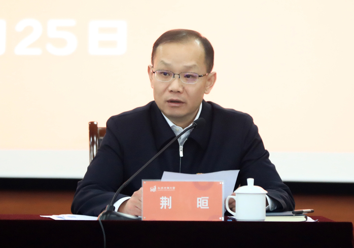 4月25日,我校举行学习贯彻习近平新时代中国特色社会主义思想主题教育读书班开班式。校党委书记荆晅作开班动员讲话,省委第十九巡回指导组组长朱汉清和巡回指导组全体成员到会指导。全体校领导、全体中层干部、马克思主义学院全体教师参加读书班开班式。开班式由校党委副书记、校长崔新有主持。