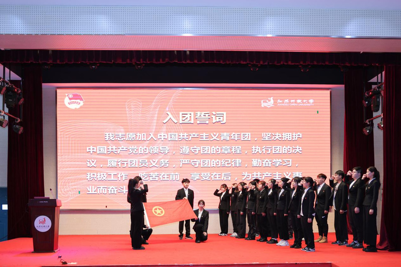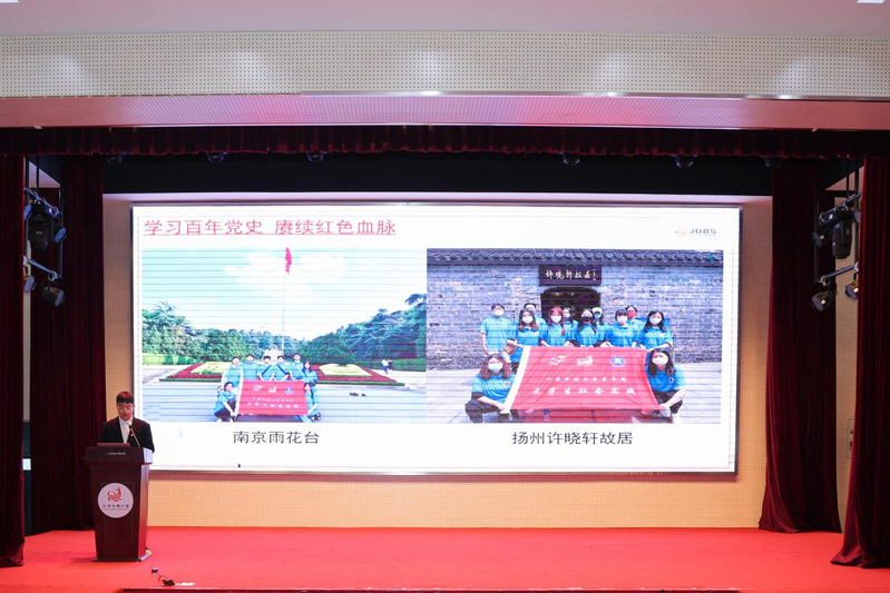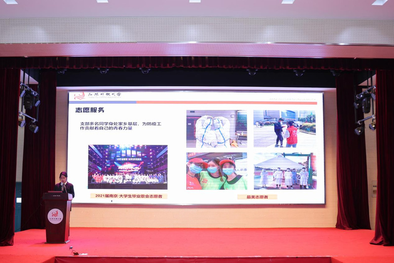 表彰大会由青春初心、青春传承、青春奋进三个篇章组成。颁奖嘉宾分别为“国家奖学金”“挑战杯”“团干部思政技能大比武”、江苏省“红旗团总支”等20余个奖项的获奖集体和个人颁奖。表彰大会发布了校共青团宣传片《青春》;获奖团队与个人代表与广大团员青年进行青春对话,分享青春故事;青年教师带来省级示范信仰公开课;大学生艺术中心同学用诗朗诵《复兴路上的青春告白》喊出了“强国有我”的铮铮誓言;大会现场举行了入团仪式。