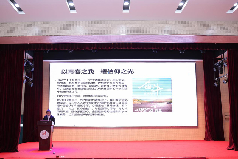 为推进学习贯彻习近平新时代中国特色社会主义思想主题教育进一步走深走实,在“五四”青年节之际,我校在体艺馆406举办“青春心向党 奋进再起航”“五四”表彰大会暨信仰公开课。校党委副书记、副校长金丽霞,组织部、宣传部、教师工作部、教务处、学工部、后勤处、保卫部、团委主要负责人,各学院党总支部副书记、团委委员、师生代表出席会议。大会由团委书记包慧君主持。