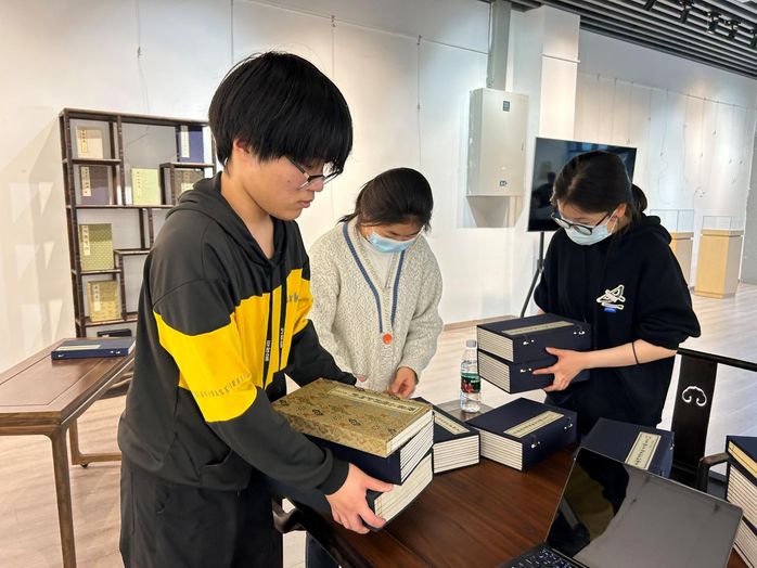 为推进我院高职课程思政建设,落实立德树人根本任务,锤炼学生的实践能力,检验课程教学成果,2023年4月29日,艺术学院与秦淮·非遗馆、扬州市邗江古籍印刷厂联合举办的文都千载·书香镌永——线装古籍再造艺术展在南京市非遗体验中心(秦淮·非遗馆)顺利开展。本次展览由文化休闲系承办,21级休闲服务与管理的同学们参与了策划、布展、公教活动的全过程。