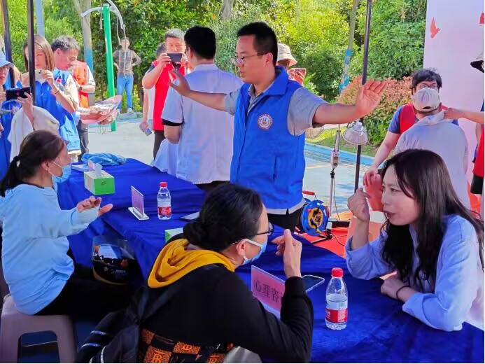 活动现场,沈静与来访的居民亲切地交流,为残疾人群体普及基本地心理健康知识。残疾人由于身体残疾,在日常生活中承受着极大地压力;身边亲人也不知道如何与他们相处、交流,并排解自身压力。在一个个案例中,她围绕基础的心理健康知识向大家普及一些关于心理疾病地诊断标准,并且就常见的放松训练、压力应对方法与大家交流,通过交流鼓励残疾人士接受专业康复训练指导,引导其保持健康乐观的心态积极面对生活,提升残疾人的身心健康水平。