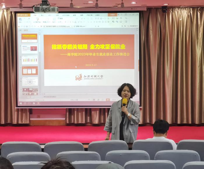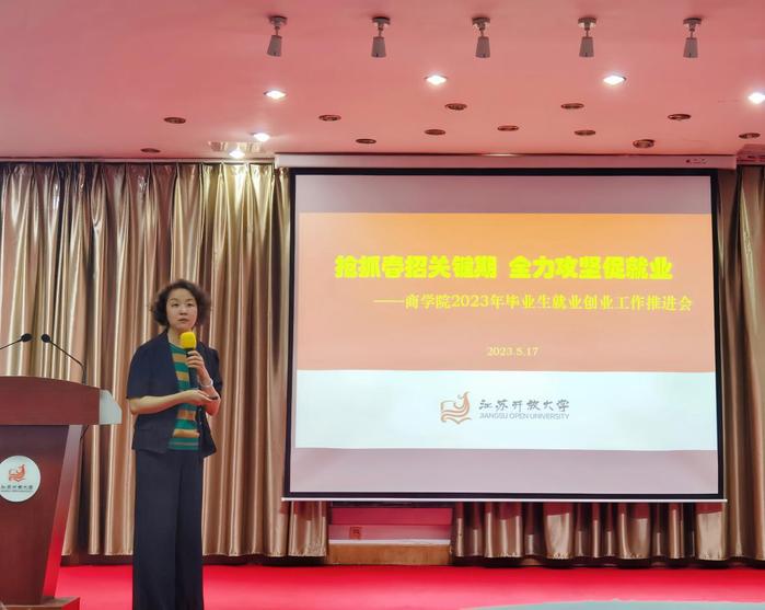 正值2023届毕业生求职就业关键期,为贯彻落实好党中央、国务院“稳就业”“保就业”决策部署,助推学院毕业生实现充分就业和高质量就业,5月17日下午,商学院在东校区5楼报告厅召开2023年毕业生就业创业工作推进会。会议由学院党总支部副书记丁晓华主持,全院教职工参加了此次会议。