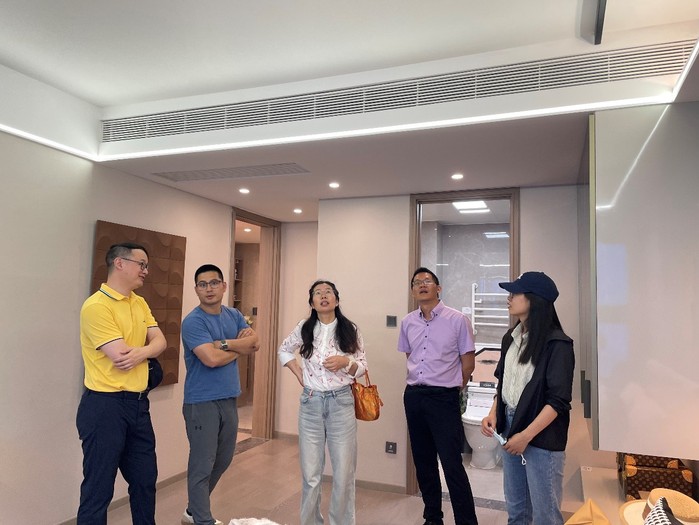 本次调研共分为三部分,一是为我校2021届江苏开放大学本科毕业生、首开股份主管工程师周文杰颁发优秀校友聘书;二是项目观摩学习,参观首开股份春秋祥云项目部,现场我院教师和周文杰工程师在室内给排水、智能家居和中央空调等方面进行了专业性探讨交流,同时周文杰工程师表达了希望与建筑工程学院就高质量人才引进方面开展更深层次的交流合作,共同助力校企双方的稳步发展;三是与现场工作人员进行招生宣传,欢迎企业人员来我校学历再提升。