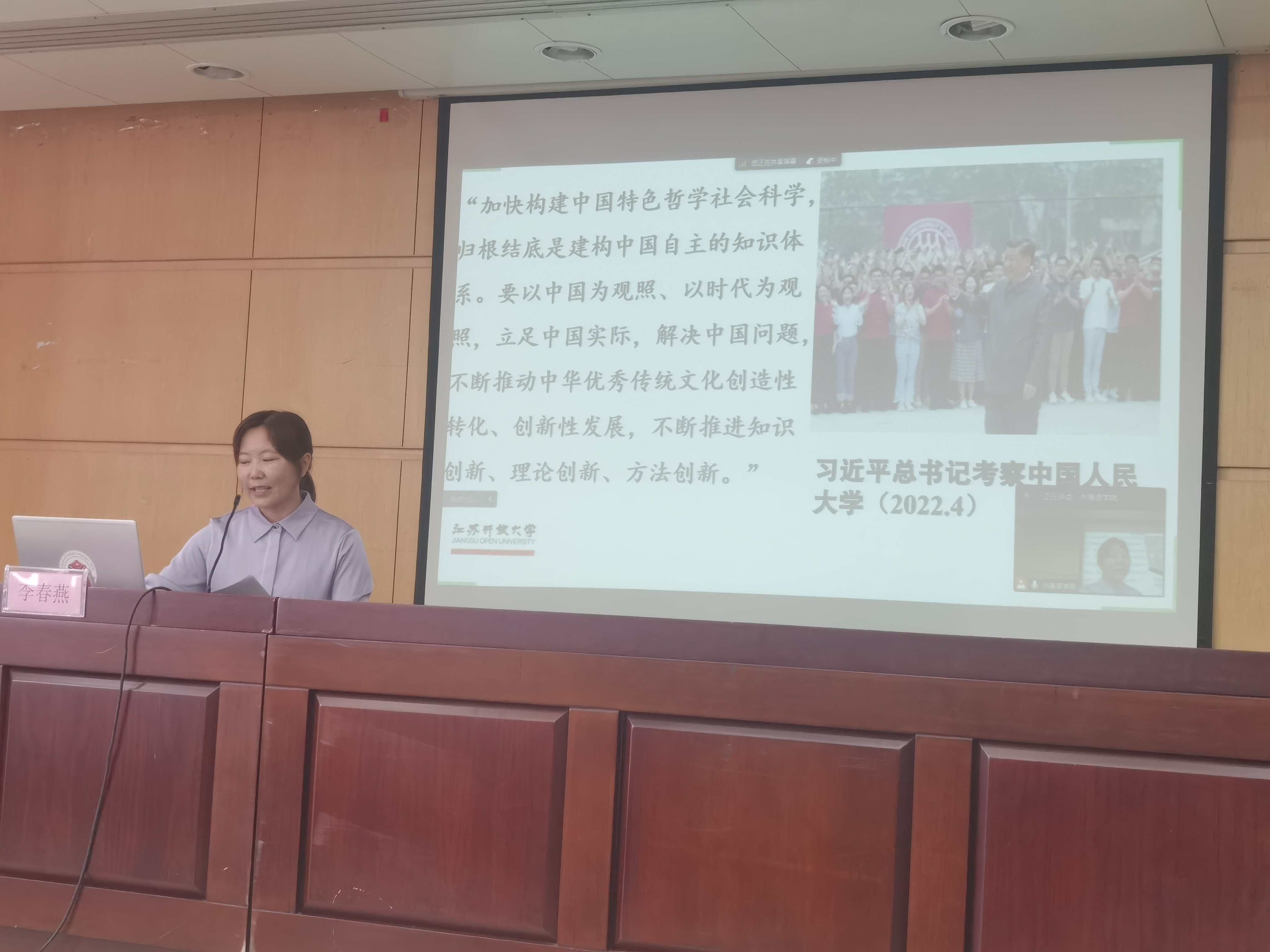 为了营造浓厚的科研学术文化氛围,促进系统党建共建,提升外国语学院及党建共建单位-南通开放大学马克思主义学院教师们的科学研究水平,外国语学院党总支部于5月23日在图书馆二楼阶梯教室进行了主题为“以科技创新推动学院高质量发展”的理论学习中心组学习。本次学习特别邀请了2022年学校国社科基金的获得者建工学院的张晓东老师和教育学院的李春燕老师主讲,扩大到学院和南通开放大学马克思主义学院全体教职工,活动由学院党总支部副书记章琼主持。