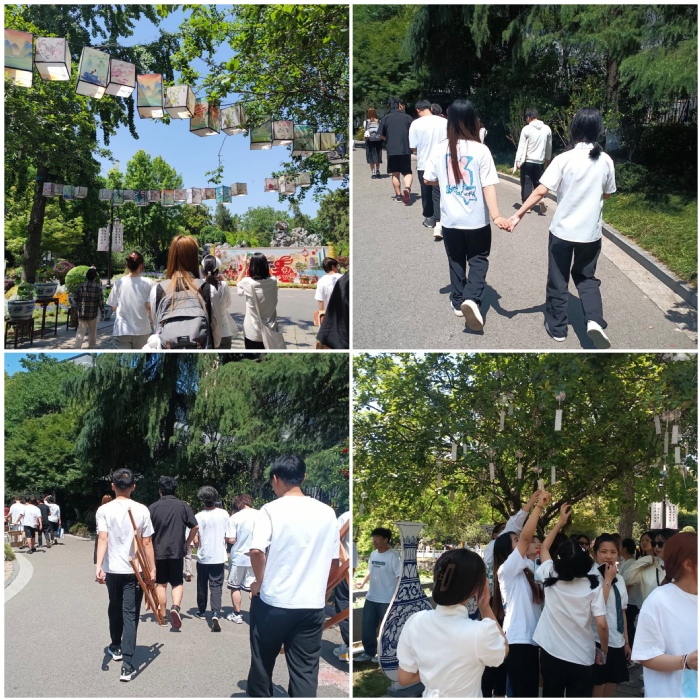 为进一步开拓同学们的视野,丰富和创新学习教育形式,引导和帮助同学们在实践中受教育、学专业、长才干、作贡献。5月23日下午,建筑工程学院22级建筑室内设计2班全体同学和辅导员顾小丽老师一起前往南京莫愁湖公园开展“以青春之美 筑强国之梦”行走的主题班会实践活动。