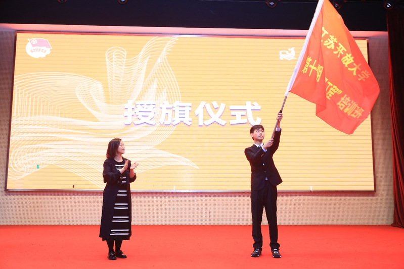 团委书记包慧君为本期学员代表授旗。