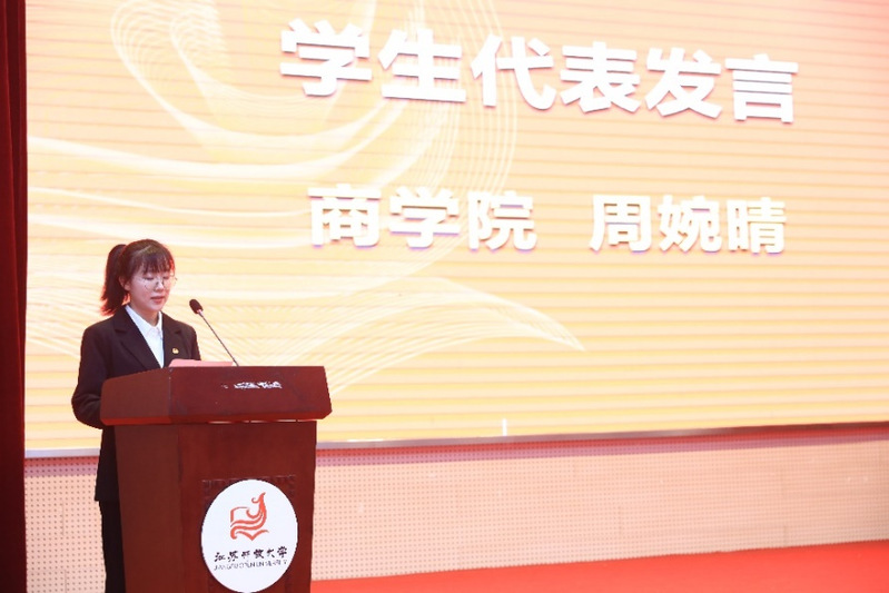 会上,商学院的周婉晴同学作为本期青马培训班学员代表发言。她代表本次培训班的全体学员作出“将以最饱满的热情、最全面的投入、最实际的行动来学好本期培训课程”的郑重承诺,并号召大家脚踏实地,奋勇争先,在大学生涯的赛道上跑出令自己满意的成绩。