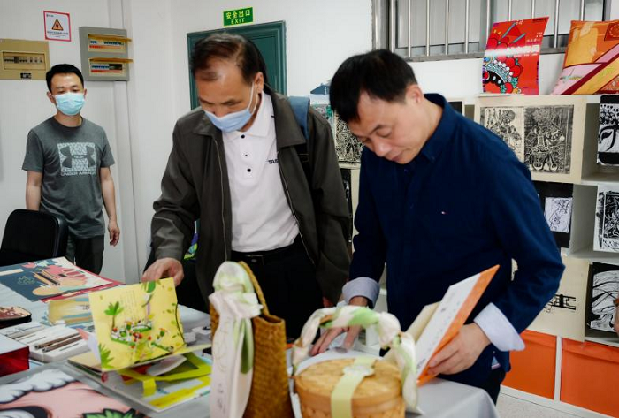 (图4:专家们在参观设计学院学生作品)