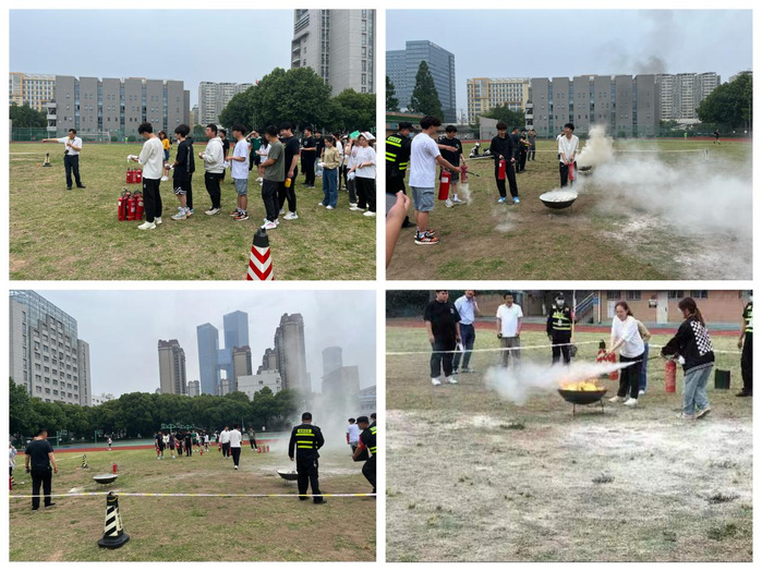 在消防逃生应急演练中,左克军就实验室消防安全知识进行培训,给大家详细讲解了火灾发生的危害、火患发生时的应急处置、常见初期火灾扑救技巧、火场逃生方法及注意事项等,并实地讲解消防栓、灭火器的分类及使用方法。随着烟雾警报声的响起,逃生演习正式开始,老师和同学们在工作人员的指挥下,从图附楼4010实验室快速撤离烟雾地点,沿着指定楼梯通道到安全地带,顺利完成了应急疏散逃生演练;疏散到操场后,同学们按照教授的方法进行灭火器的使用,将燃起浓烟的大火迅速扑灭。