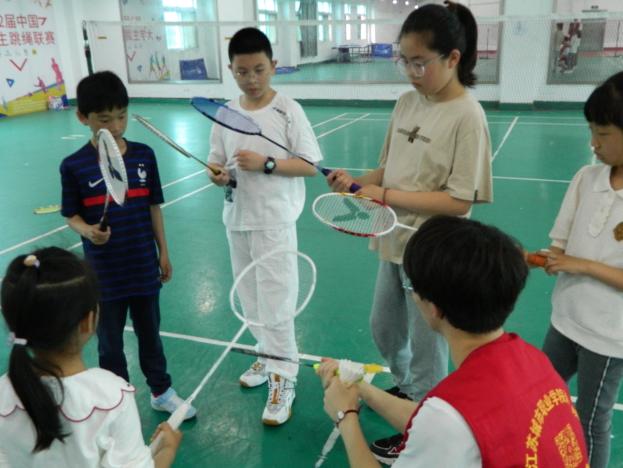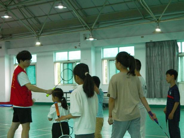 围绕组织小朋友开展羽毛球和乒乓球兴趣活动为主题,古林社区的小朋友们在家长的陪同下,共同参与本次活动。小朋友们根据自己的兴趣选择喜欢的运动。一组小朋友在东校区图书馆6楼羽毛球室开展活动,范晓广、刘萱等学生志愿者向小朋友介绍如何握拍、羽毛球的规则、羽毛球拍的结构以及打羽毛球的技巧等。
