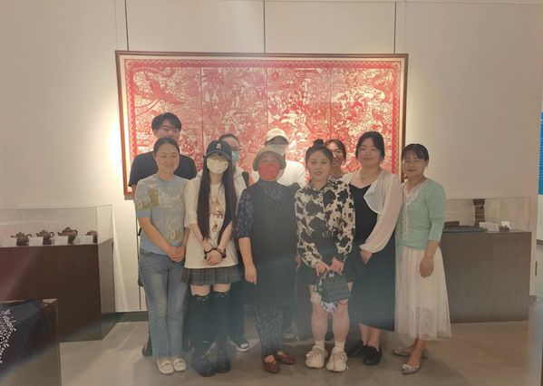 本次线下教学围绕绘画作品展览与非遗互动体验两大主题展开。设计学院副院长孙培松、艺术教育专业负责人李嫣与《民间艺术赏析》《综合艺术创作》《少儿美术创作》等课程的负责人蒋雪涵、陈曦教师参与了此次线下教学。