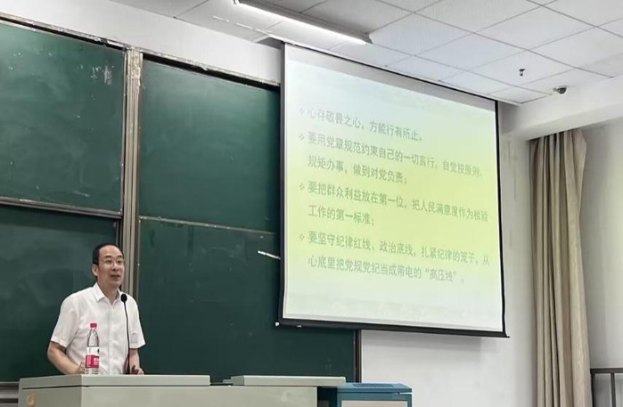 开班仪式结束后,校党校副校长、纪委副书记胡大华同志以《从严要求,做有理想的大学生》为题,进行了培训班的第一堂专题辅导。他表示入党积极分子首先要知道党的纪律主要包括政治纪律、组织纪律、廉洁纪律、群众纪律、工作纪律、生活纪律。身为入党积极分子,系统掌握党的知识、明确党的发展目标、坚定党的信念有助于我们严于律己,主动作为,努力成才,也有利于自己的未来长远发展,将专业学习与思想成长更好的融合与促进,成为新时代中国特色社会主义事业的合格建设者和接班人。