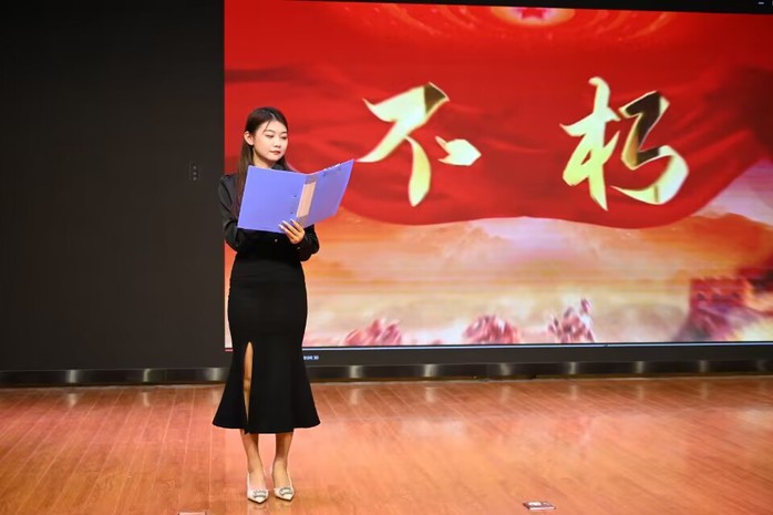 经过各学院层层选拔,最终12支队伍进入学校决赛。校赛分为两轮,第一轮,评委根据选手的朗诵内容、语言流畅度、情感表达、普通话标准程度、朗诵仪态进行打分。成绩在前六名的队伍,晋级第二轮比赛,第二轮为即兴评述。