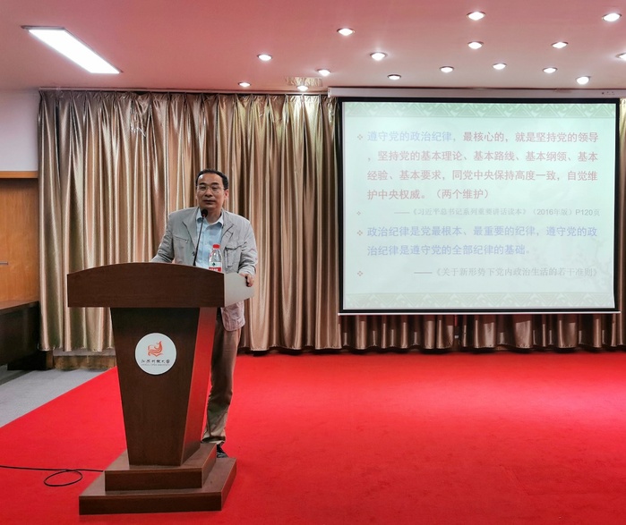 开班典礼结束后,胡大华教授主讲培训班第一课《从严要求,做有理想的大学生》,胡教授分别从党的纪律、做有理想的大学生这两个方面进行深入讲解,让学员理解了纪律对于约束党员的言行举止的重要性和必要性,也引导学员要以正式党员的标准严格要求自己,以身作则,真正起到模范带头作用。