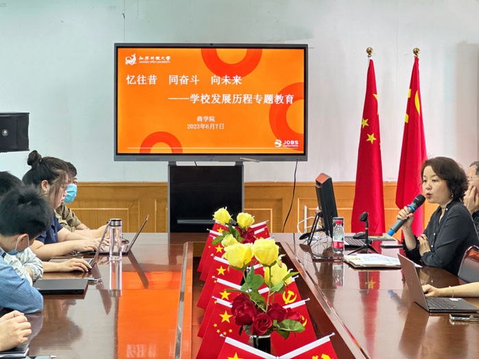 6月7日下午14:00在东校区综合楼411室,商学院关工委邀请学校关工委、原组织部部长卢福毅开展关于学校发展历程的专题教育。活动由商学院党总支副书记丁晓华主持,学院2020年以后入职的30名教师参加活动。