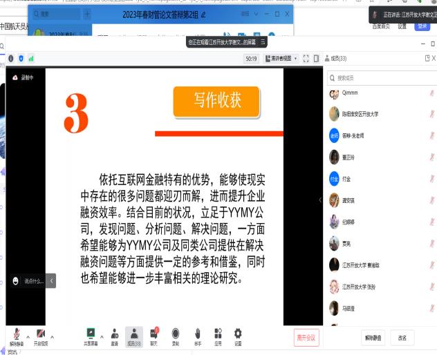 2023年6月3-4日,商学院组织开展财务管理(本科)专业毕业论文答辩,商学院教师与部分市、县开放大学教师共同组成答辩教师团队主持答辩,2023春季财务管理(本科)毕业生参加了答辩。答辩以教师线下主持、学生线上答辩形式开展。