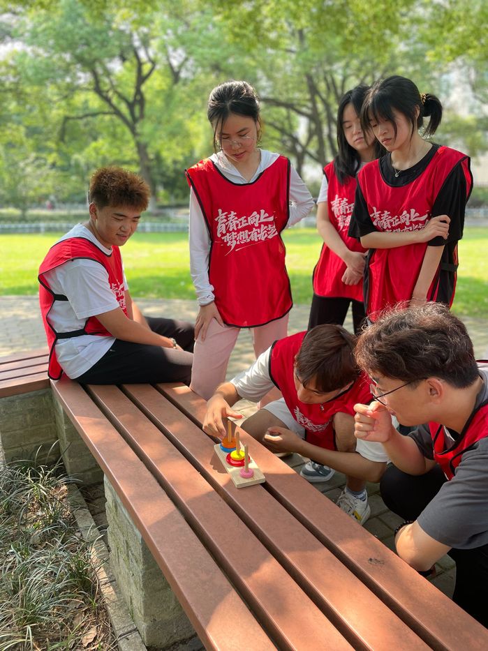 同学们迎着初夏的阳光,在辅导员王庆宁老师的带领下,统一步行至风景秀丽的古林公园。在教练的引导下,同学们分为四组开展“团队展示”“汉诺塔”“水果消消乐”等形式多样、内容丰富的游戏比拼。大家配合默契,团结协作,完成一个个充满挑战性的任务。户外素质拓展活动,让每一名学生都受益匪浅,大家纷纷表示要将这次活动中领悟到的感想和认识带到今后的学习生活中,加强各民族同学之间相互交流、相互欣赏、相互学习,胸怀理想、志存高远,珍惜大学时光,以更加顽强拼搏的积极态度和凝心聚力的团队精神,立足自身、勇创佳绩。