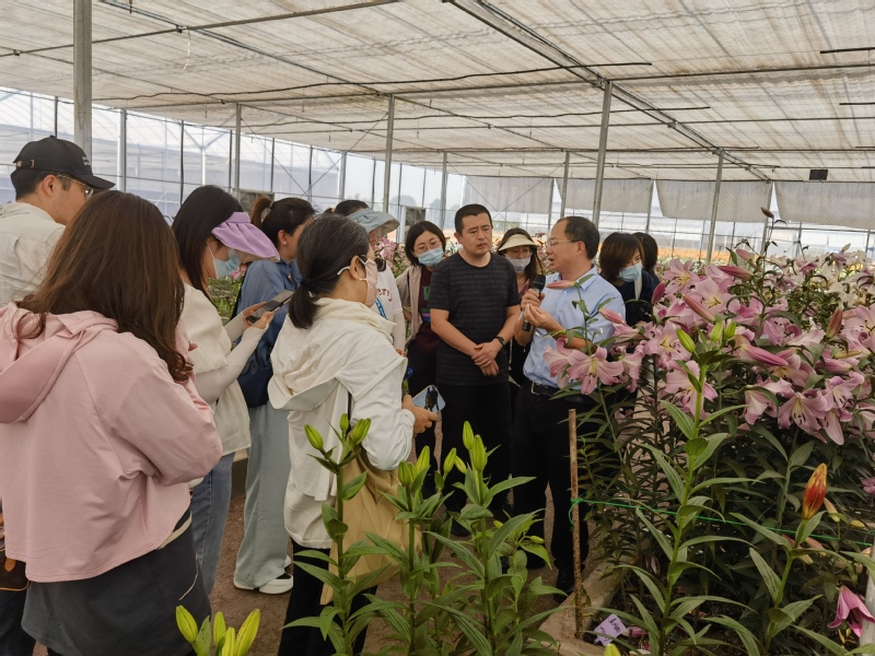 调研期间,资源建设中心的老师们还参观了百合室内产学研合作创新基地,就百合的相关专业知识提出问题,交流讨论,进一步对“三好百合”即“好看、好吃、好听”有了更加直观、深入地了解。调研过程中,资源建设中心张知慧对百合基地所做的科研探索表示赞赏,认为百合岛真正“把论文写在了大地上”,希望双方未来进一步开展合作交流。