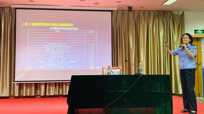 陈川宁以“什么是诈骗”为切入点,用真实鲜活的案例披露十余种高校常见电信诈骗及套路话术,且依据自身丰富知识和经验提出受骗人的若干心理误区,深化在场学生对电信网络诈骗的认识和理解。同时,陈川宁呼吁同学们严守个人信息安全,时刻提高防范意识,提升道德修养以谨慎面对各种诱惑。