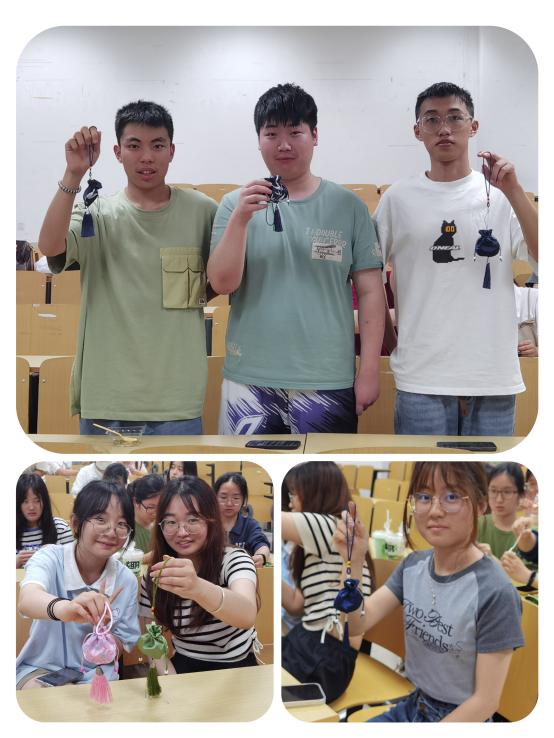 时值端午前夕,制作香囊、香包是我国的传统民俗,用艾草等中草药填充的香囊更是有助于安神及防蚊虫叮咬。为使同学们充分感受节日氛围,中医护理小组带领大家制作中药香囊。小小的香囊,不仅外观精致、香气宜人,内在也很有“料”,同学们在体验了动手制作的乐趣同时,也弘扬了中华民族传统文化,加强了民族自信和文化自信。