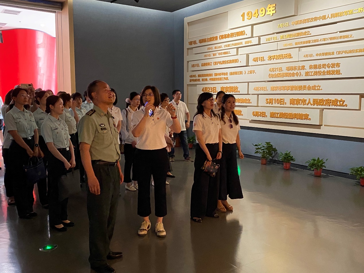 为了推动学习贯彻习近平新时代中国特色社会主义思想主题教育走深走实,七一前夕,外国语学院党总支与陆军炮兵防空兵学院外训大队党委的全体党员开展了一次军民共建、重温入党誓词,牢记初心使命,推动事业发展的联合党日活动。以学铸魂、以学增智、以学正风、以学促干,双方党员赴南京渡江胜利纪念馆开展现场教育、共看江苏开放大学拍摄的红色教育资源片、深入探讨专业共建,接受了一次深刻的党性淬炼,增强立德树人的决心和力量,拓宽全方位合作视野,就共同建设来华留学生中国国情教育课程、汉语国际教育专业实践基地提质增效达成重要共识。