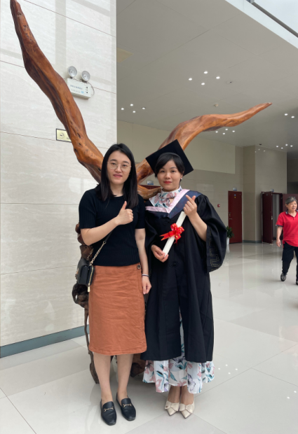 学院辅导员陈芳芳老师和优秀毕业生代表王维合影