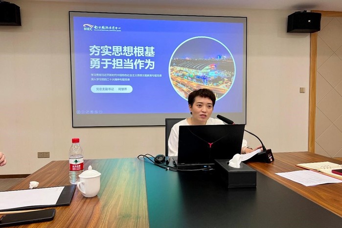 马克思主义学院青年教师、秦淮区“秦听我说”理论宣讲团成员刘敬东,以“扬帆数字蓝海共创美好未来”为题讲授专题党课。他结合南京国展中心的发展实际,围绕“企业数字化转型”,从“什么是”“为什么”“怎么做”三个方面,助力企业党员干部立足岗位职责、徜徉数字蓝海,把握并增强数字化服务能力。南京国展中心党总支副书记何慧芹以“夯实思想根基勇于担当作为”为题讲授专题党课。她结合工作实际,阐释了企业意识形态工作的重要意义和主要任务,探索了实践路径,进一步加深了与会同志对意识形态工作的理解和认识。