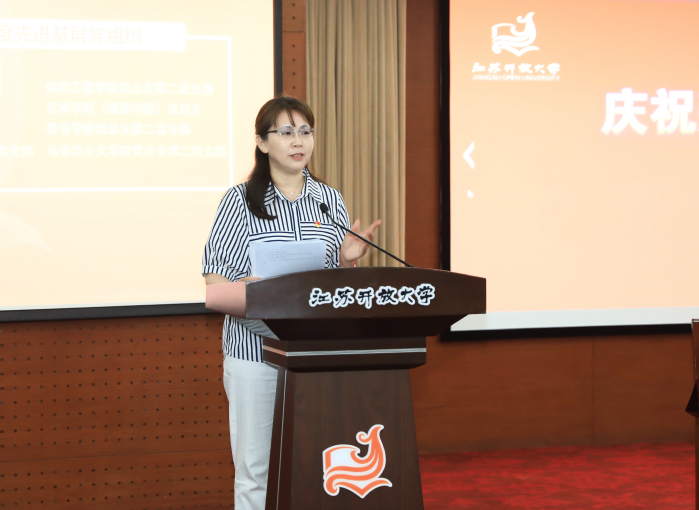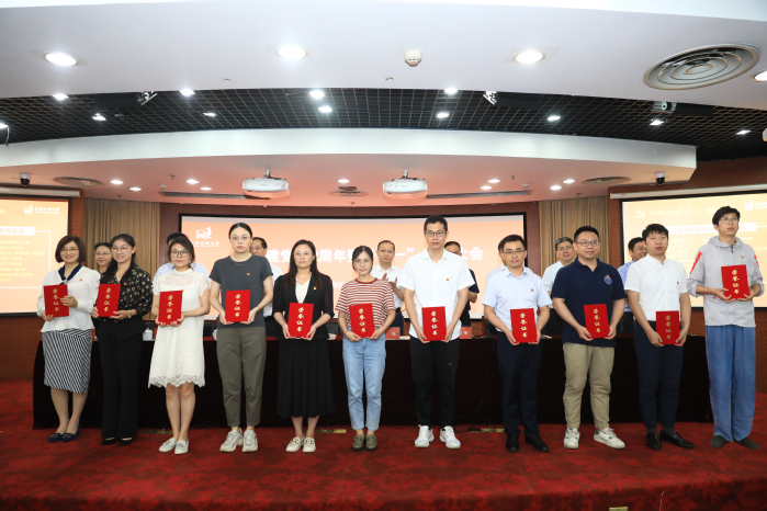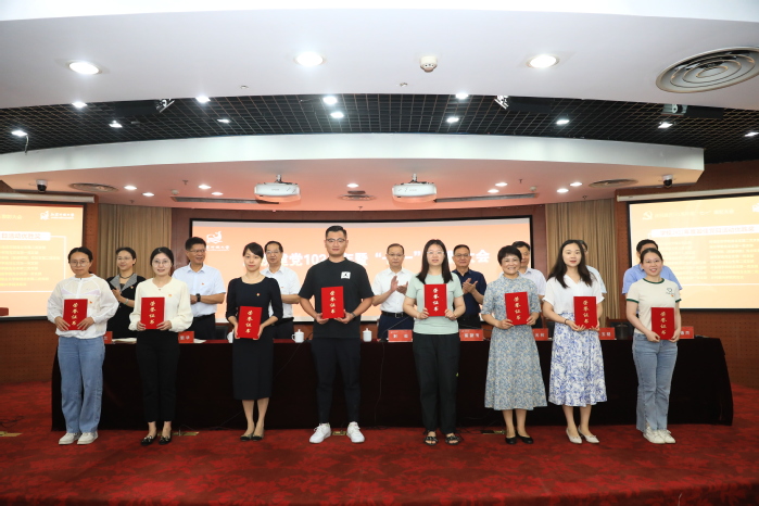 金丽霞宣读了《关于表彰2023年度优秀共产党员、优秀党务工作者、先进基层党组织的决定》和《关于公布2021—2022年度党建工作创新奖和2022年度最佳党日活动评选结果的通知》,校领导为获奖的集体和个人颁奖。